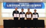 완주군 클릭뉴스2025. 03.27[클릭뉴스]완주군이 근로자들의 작업복 세탁을 위한 협약을 체결하고, 본격적인 지원에 나섰다. 지난 26일, 완주군은 전북자치도 근로자종합복지관에서 (사)전북산학융합원, 대표 참여기업, 전문세탁업체와 업무협약을 체결했다. 이날 협약식에는 유희태 완주군수, 심부건 의원, 강승구 전북산학융합원장, 김상곤 한국노총완주지역지부 부의장과 참여기업 25개 사가 참석했다. 협약을 통해 ㈜뉴텍, ㈜대동철강, 동해금속㈜, 한일특장㈜ 등 완주산단 소재 중소기업 25개사가 세탁을 지원받게 됐다. 군은 작업복에 묻어있는 산업오염물질을 효과적으…