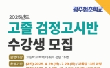 교육 클릭뉴스2025. 03.26[클릭뉴스]광주시교육청금호평생교육관은 오는 4월부터 7월까지 운영하는 ‘2기 고졸 검정고시반’ 수강생을 선착순 모집한다. ’고졸 검정고시반‘은 ’광주청춘학교‘ 사업의 하나로 성인 만학도와 시니어의 배움의 욕구 충족과 학력 취득 기회를 제공하기 위해 마련됐다. 2기 과정은 8월에 실시되는 ‘2025년도 2회 고졸 검정고시 시험’에 대비해 고등학교 학력 미취득 성인 15명을 대상으로 운영된다. 과정은 ▲국어 ▲수학 ▲영어 ▲사회 ▲과학 ▲한국사 등 6개 강좌이며, 모든 강좌는 주 1회 총 13회 진행된다. 수강료는 무료다. 수…