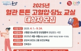 군산시 클릭뉴스2025. 03.26[클릭뉴스]군산시 보건소가 만성질환 예방과 체계적인 건강관리를 돕기 위해 ‘혈관튼튼 고혈압·당뇨 교실’ 운영을 앞두고 참여자를 모집한다. 이번 교육은 고혈압과 당뇨 등 만성질환을 가진 주민들의 자가 건강관리 능력향상과 건강행태를 개선할 올바른 생활 습관을 형성하도록 돕는다. 주요 내용은 ▲혈압, 혈당 체크 및 1:1 건강 상담 ▲만성질환 관리법 교육 ▲만성질환 예방을 위한 운동 및 힐링 프로그램 등 다양하게 구성된다. 특히 개별 맞춤형 건강 상담을 통해 참가자들이 현재 건강 상태를 쉽게 파악하고, 실생활에서 쉽게 실천할 수 있…