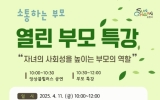 순천시 클릭뉴스2025. 03.25[클릭뉴스]순천시는 오는 4월 11일 오전 10시에 신대도서관에서 『자녀의 사회성을 높이는 부모의 역할』을 주제로 전문가 초청 부모 특강을 개최한다고 밝혔다. 이번 특강은 부모교육 전문가이자, ‘멘탈이 강한 아이가 결국 해냅니다’의 저자인 임영주 박사를 초청하여 △자녀의 자존감을 올리는 대화법 △학교폭력 등 갈등상황에서의 대처 △자녀 양육의 솔루션 등을 허심탄회하게 이야기 나눌 예정이다. 시는 매년 청소년 자녀를 둔 부모, 지도자를 대상으로 자녀와 함께 성장하는 부모 집단상담 및 정서코칭, 성・사이버폭력 등 다양한 주제의…