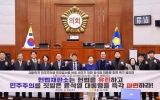 교육 클릭뉴스2025. 03.19[클릭뉴스]나주시의회는 3월 19일, 제268회 나주시의회(임시회) 제1차 본회의를 열고 ‘대한민국 민주주의와 헌정질서를 바로 세우기 위한 윤석열 대통령 탄핵 촉구 결의안’을 만장일치로 채택했다. 이번 결의안을 대표 발의한 김강정 의원은 “12·3 비상계엄은 국회의 기능을 마비시키고, 국민의 정치적 자유를 억압하려 한 중대한 범죄 행위이며, 이로 인해 대한민국은 극심한 정치적 혼란에 빠졌으며, 국제 사회에서도 민주주의 국가로서의 신뢰를 잃었을 뿐 아니라 주요 경제 지표가 급락하고, 외국인 투자자들이 대한민국 시장에서 이탈하는 등 …