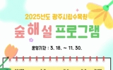 광주광역시 클릭뉴스2025. 03.17[클릭뉴스]광주광역시립수목원은 18일부터 11월30일까지 계절별 다양한 숲해설 프로그램을 무료로 운영한다. 숲해설 프로그램은 유아부터 성인까지 누구나 참여할 수 있는 맞춤형 프로그램으로 구성돼 있다. 숲해설가가 참여자와 함께 수목원을 돌며 숲에 대한 올바른 이해와 효율적인 산림탐방 활동 등을 도와준다. 숲해설 프로그램은 계절별로 볼 수 있는 꽃과 열매 등 다양한 자연의 요소를 주제로 활용해 성인에게는 명상과 숲길 걷기 등 스트레스 완화 활동을, 어린이와 취약계층에게는 눈높이에 맞춘 숲 속 동물들 이야기와 다양한 오감 체험 등 힐…