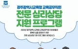 교육 클릭뉴스2025. 03.14[클릭뉴스]광주시교육청이 교육공무직원의 심리·정서적 안정을 돕기 위해 전문심리상담을 운영한다. 교육공무직원 전문심리상담은 전문심리상담 기관에 위탁해 오는 17일부터 연말까지 운영된다. 대면, 전화, 화상, 이메일 등의 다양한 방식으로 개인상담, 집단상담, 찾아가는 심리상담, 고위험군 및 위기 사례관리 긴급 지원 서비스 등을 운영한다. 올해는 광주지역 상담 연계기관을 31개로 확대해 접근성을 높이고, 찾아가는 심리상담에서는 1 대 1 스트레스 측정을 통해 맞춤형 심리상담을 제공한다. 개인문제, 업무, 직장 내 대인관계 등에…