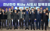 문화 클릭뉴스2026. 01.29[클릭뉴스] 전주시가 후백제의 역사를 규명하고, AI를 활용한 도시의 미래 비전을 공유하기 위해 관련 전문가, 시민들과 머리를 맞댔다. 시와 전주시정연구원은 29일 오후 2시 국립무형유산원 국제회의장에서 정동영·김윤덕·이성윤 국회의원과 함께 AI대전환시대 후백제의 왕도 전주가 나아갈 미래 비전을 논의하는 ‘천년전주 역사와 AI도시 정책포럼’을 개최했다. 이번 정책포럼은 후백제 유적 발굴 등으로 후백제의 역사성과 정체성이 명확해지고 있는 상황에서 전주시가 미래 전략산업으로 적극 육성하고 있는 AI와 연결해 후백제와 AI가 만나…