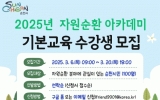 순천시 클릭뉴스2025. 03.13[클릭뉴스]순천시가 2025년 자원순환 아카데미 기본교육을 시작한다고 13일 밝혔다. 이번 교육은 자원순환 분야에 관심이 있는 순천시민 100명을 대상으로 실시하며, 3월부터 7월까지 월 1회 교육을 실시한다. 교육은 생태비즈니스센터(역전광장3길 54)에서 진행되며, 자원순환 정책을 비롯하여 노(No)플라스틱 생활문화, 순환경제 등 자원순환 분야 관련 내용으로 구성되어 있다. 교육 대상자로 선발될 시 기본교육 전 과정을 무료로 수강할 수 있으며, 80% 이상 출석 시 수료할 수 있다. 기본교육 수료자들에게는 하반기 자원순환 …
