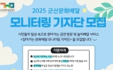 군산시 클릭뉴스2025. 03.11[클릭뉴스]군산문화관광재단은 ‘군산 문화 배달’선정 프로그램을 평가하기 위한 시민 평가(모니터링)단을 오는 28일까지 모집한다고 밝혔다. 시민 평가(모니터링)단으로 선정되면 군산 문화 배달 사업의 주요 행사 및 사업 등을 직접 살펴보고, 개선방안을 제안하는 역할을 맡게 된다. 시는 이에 따른 활동비를 회당 5만 원(최대 2회) 지급할 계획이다. 모집 인원은 모두 6명이며, 군산시민 누구나 참여할 수 있다. 선정 결과는 4월 첫째 주 중 합격자에 한해 개별 안내되며, 발대식은 4월 둘째 주에 진행된다. 참여 희망자는 군산문…