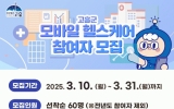 [클릭뉴스]고흥군은 군민의 자가 건강관리 능력 향상을 위해 ‘2025년 모바일 헬스케어 사업’ 참여자 60명을 오는 10일부터 선착순으로 모집한다고 밝혔다. 신청 자격은 19세 이상 64세 이하의 고흥군민으로 고혈압, 당뇨, 고지혈증 약을 복용하지 않으며, 혈압, 공복혈당, 중성지방, HDL콜레스테롤, 허리둘레 중 1가지 이상의 건강 위험 요인을 보유하고 있으면 참여할 수 있다. 사업 참여자는 보건소 전문가(간호사, 영양사, 운동처방사)로부터 6개월 동안 정기 건강검진과 개인 맞춤형 건강상담을 받을 수 있으며, 건강 관리를 지원…
