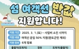 함평군 클릭뉴스2025. 03.05[클릭뉴스]완도군은 ‘2025 완도 방문의 해’를 맞아 3월 1일부터 관광객 유치와 지역 경제 활성화를 위해 섬 여객선 반값 운임 지원 사업을 추진한다. 지원 대상은 완도를 찾는 관광객으로 완도군에 주민등록을 두고 있지 않은 일반인이 해당된다. 이용 방법은 청산, 노화, 소안, 보길도 여객선 이용 시 선사가 신고한 운임에서 50%를 자동으로 할인받을 수 있다. 여객선 반값을 지원받을 수 있는 항로는 완도-청산, 완도-여서, 땅끝-산양, 땅끝-넙도, 화흥포-동천-소안 등 6개이다. 단, 월별 지원 예산에 한도가 있어 예산 소진…