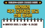 문화 클릭뉴스2025. 02.28[클릭뉴스]광양시는 의료 취약계층인 의료급여수급권자의 건강검진 수검률 향상을 위해 1:1 검진 안내, 의료급여수급권자 건강검진 이벤트 등 적극적인 홍보 활동을 진행하고 있다고 28일 밝혔다. 올해 의료급여수급권자 일반건강검진 대상자는 20 부터 64세(1961~2005년생) 중 홀수년도 출생자로, 일반건강검진기관으로 지정받은 의료기관이라면 전국 어디에서나 검진받을 수 있다. 검진이 가능한 의료기관은 국민건강보험공단 홈페이지에서 확인할 수 있다. 건강검진 항목은 △신체 계측(키·몸무게·허리둘레) △시력·청력 측정 △혈압 측정 …