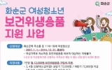 화순군 클릭뉴스2025. 02.28[클릭뉴스]화순군은 28일 여성 청소년의 건강권 보장과 권익 증진 실현을 위한 보건위생용품 지원사업을 추진한다고 밝혔다. 지원 대상은 화순군에 주소를 둔 11세 부터 18세(2007년~2014년 출생) 여성 청소년이다. 신청 대상은 해당 나이에 도달한 신규자 및 그간 미신청자에 한한다. 기존 신청자는 자격요건 해당 시 별도 신청 없이 바우처가 지급되며, 특히 여성가족부로부터 여성 청소년 보건위생용품을 지원받는 청소년은 중복 지원에 해당하는 이유로 사업 대상에서 제외된다. 지원 금액은 1인당 월 1만 2,000원으로 바우처…