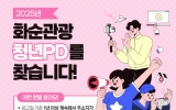 화순군 클릭뉴스2025. 02.28[클릭뉴스]화순군이 지역 청년들의 창의적인 감각과 SNS 역량을 활용해 화순 관광을 홍보하는 ‘화순 관광 청년PD’를 모집한다. 올해는 기존 연중 활동 방식에서 벗어나 1차(4월~6월)와 2차(9월~10월), 상·하반기로 운영한다. 이를 통해 특정 시기에 집중적인 콘텐츠 제작과 홍보를 강화하고, 화순군의 주요 관광 시즌에 맞춰 효과적인 마케팅을 펼칠 계획이다. 모집 기간은 2월 28일부터 3월 14일까지이며, 참가자는 공고일 기준 1년 이상 계속해서 광주 및 전남에 주소를 두고 실제 거주하는 18세 이상 49세 이하 청년으로…