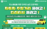 군산시 클릭뉴스2025. 02.28[클릭뉴스]군산시가 자동차 주행거리 단축 실적을 평가해 혜택(인센티브)을 제공하는 ‘2025년 자동차 탄소중립포인트’를 시행한다. ‘자동차 탄소중립포인트제’는 운전자가 기준 주행거리 대비 주행거리를 줄여 온실가스 감축에 기여했을 경우 실적에 따라 최대 현금 10만 원의 인센티브를 주는 전 국민 온실가스 감축 실천 프로그램이다. 모집 기간은 3월 4일부터 14일까지이며, 올해 모집 대수는 총 374대이다. 참여 대상은 관내 12인승 이하 비사업용 승용·승합 차량이며 전기, 하이브리드, 수소차 등 친환경 차량은 제외다. 참…