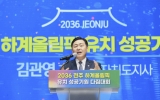 전라북도 클릭뉴스2025. 02.27[클릭뉴스]2036 전주 하계올림픽 유치를 위한 전북특별자치도의 행보에 정치권과 체육계, 도민들이 한마음 한뜻으로 힘을 보태고 있다. 비수도권 연대를 통해 국가 균형발전을 실현하고자 하는 전북의 올림픽 유치에 정치권과 체육계, 지역사회의 적극적인 지지가 더해지면서 실현 가능성을 더욱 높여가고 있다. 전북이 국내 후보도시로 최종 확정되면 대구(육상·대구스타디움), 광주(수영 및 양궁·남부대학교 시립국제수영장 및 국제양궁장), 충북 (체조·청주다목적실내체육관), 충남(테니스·충남국제테니스장), 전남 고흥(서핑·남열해수욕장)과 함께…