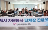 장흥군 클릭뉴스2025. 02.26[클릭뉴스]김제시는 김제시자원봉사센터(센터장 남궁행원)가 지난 25일 자원봉사 단체장 및 임원 70여명이 참석한 가운데 2025 김제시 자원봉사 단체장 간담회를 개최했다고 밝혔다. 이번 간담회는 지역사회에서 적극적으로 활동하는 자원봉사단체를 격려하고 소통과 화합의 장을 마련하기 위해 추진됐으며 2025년 주요 사업안내 및 자원봉사단체 간 협력방안 등을 논의하는 시간을 가졌다. 또한 활동처 및 유관기관과의 연계를 통한 자원봉사 활성화 등에 대해 논의했고, 자원봉사 인정보상 등을 안내하며 자원봉사활동에 적극적 참여를 독려를 했다. …