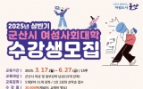군산시 클릭뉴스2025. 02.24[클릭뉴스]군산시 여성사회대학이 오는 3월 4일부터 7일까지 상반기 프로그램 수강생을 선착순 모집한다. 이번 프로그램은 ▲직업훈련 교육(패션 양재 등 5개) ▲정보화 교육(기초 엑셀 등 2개) ▲생활 문화(생활 집밥 요리 등 2개) ▲교양 교육(보태니컬 아트와 색연필화 등 18개) ▲야간 교육(통기타 초급 등 4개) 분야별 총 31개 강좌가 운영된다. 또한 생활 집밥 요리 등 19개 강좌는 남성 회원도 참여할 수 있다. 교육 기간은 3월 17일부터 6월 27일까지 총 15주이며, 수강료는 주 1회 2시간 15주 과정에 30,…