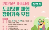 순천시 클릭뉴스2025. 02.19[클릭뉴스]순천시는 도심 속 자연과 함께하는 ‘가족사랑 텃밭 체험’ 참여 가족을 오는 27일까지 모집한다고 밝혔다. 이번 가족사랑 텃밭 체험 프로그램은 가족 단위 시민을 대상으로 오는 3월 8일부터 6월 14일까지 4개월간 매월 1회 토요일 진행된다. 주요 프로그램으로는 파종, 재배, 수확 및 가공까지 다양한 텃밭 체험활동을 제공하며, 이를 통해 참여 가족이 서로간 유대감을 강화할 수 있도록 할 계획이다. 또한, 역량을 갖춘 도시농업관리사들에게 체계적인 텃밭관리 요령을 배울 수 있는 기회도 제공한다. 가족사랑 텃밭체험 프로그…