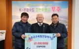 무주군 클릭뉴스2026. 01.26[클릭뉴스]무주반딧불복분자영농조합법인은 지난 26일 (재) 무주군교육발전장학재단에 장학금 1백만 원을 기탁했다. 정병주 회장은 “무주반딧불복분자영농조합 회원들은 항상 무주 발전과 이웃의 행복을 위해 솔선수범하기 위해 노력하고 있다”라며 “오늘 전하는 장학금에도 그런 마음을 담았다”라고 전했다. 이어 “무주군 지역의 교육과 농업이 상생하여 지역소멸 위기를 극복해 나갈 수 있기를 진심으로 기원한다”라고 밝혔다. 무주군 적상면에 있는 무주반딧불복분자영농조합법인은 2019년도에 설립됐으며, 청정 복분자 재배・가공・유통과 연구를 통…