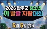 완주군 클릭뉴스2026. 03.17[클릭뉴스]완주군이 오는 5월 5일 제104회 어린이날에 아동과 청소년들이 주인공이 되어 숨겨진 재능과 에너지를 마음껏 발산할 수 있는 ‘2026 완주군 아동·청소년 끼 발랄 자랑대회’를 개최한다. 이번 대회는 유니세프 인증 ‘아동친화도시’ 완주군이 지향하는 아동·청소년의 문화적 권리 증진과 자기표현의 장을 마련하기 위해 기획됐다. 행사는 당일 오전 10시부터 오후 4시까지 완주군청 내 어울림광장 일대에서 진행되며, 어린이날 기념행사와 연계하여 지역 주민 모두가 함께 즐기는 풍성한 축제로 펼쳐질 예정이다. 모집 대상은 완주군…