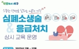 광산구 클릭뉴스2025. 01.30[클릭뉴스]광주광역시 서구는 2월부터 서구 주민을 대상으로 심정지 등 응급상황 시 신속 대응을 위해 심폐소생술 상설교육 프로그램을 운영한다. 이번 교육은 지역주민의 예상치 못한 응급상황에 대비해 심폐소생술의 중요성을 알리고 참여율을 높이기 위해 마련됐으며 ▲심폐소생술(CPR) ▲자동심장충격기(AED) 사용법 ▲기도 폐쇄에 따른 응급처치 요령 등에 대해 전문 강사의 이론 교육과 실제상황을 대비한 실습 교육을 함께 진행한다. 심폐소생술 상설교육은 회차당 25명으로 구성하여 진행되며 매달 두 번째 화요일, 오후 2시부터 4시까지 서…