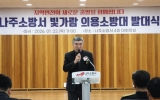 여수시 클릭뉴스2026. 01.22[클릭뉴스]전라남도의회 최명수 도의원(더불어민주당·나주2)은 1월 22일 나주소방서 대회의실에 열린 ‘빛가람 의용소방대 발대식’에 참석해 발대를 축하하고, 지역 안전 강화를 위한 의용소방대의 역할과 중요성을 강조했다. 이날 발대식에는 윤병태 나주시장, 신향식 나주소방서장과 소방공무원, 김용준·장숙희 나주시 의용소방대 연합회장과 의용소방대원, 이재태 전라남도의원, 나주시 의원 등 100여 명이 참석해 자리를 빛냈다. 빛가람 의용소방대는 채기천 대장을 중심으로 총 30명의 대원으로 구성됐으며, 나주 혁신도시 중심 지역인 빛가람동…