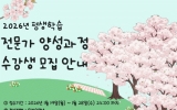 화순군 클릭뉴스2026. 01.19[클릭뉴스]화순군은 1월 19일부터 1월 28일까지 ‘2026년 상반기 평생학습 전문가 양성과정’ 수강생을 모집한다고 밝혔다. 이번 양성과정은 군민이 실생활에 바로 활용할 수 있는 실무 중심의 교육을 통해 자격증 취득과 전문성 향상을 도모하고, 나아가 지역사회에 기여할 수 있는 평생학습 전문가를 양성하기 위해 마련됐다. 교육 과정은 최신 트렌드와 군민 수요를 반영해 △정리수납전문가 1급 과정 △노인건강운동지도사 1급 등 2개 과정으로 구성되며, 2026년 2월부터 5월까지 화순 어울림센터 평생학습실에서 운영된다. 모집 대상은…