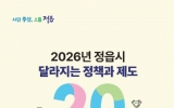 김제시 클릭뉴스2026. 01.19[클릭뉴스]정읍시가 2026년 새해를 맞아 시민들의 일상 속 변화를 이끌 7개 분야, 총 134건의 달라지는 제도와 시책에 대한 본격적인 홍보에 나섰다. 이번에 발표된 정책은 신규 도입 52건과 기존 혜택이 확대되는 82건으로 구성됐다. 분야별로는 ▲복지·건강·안전 분야 53건 ▲농업·축산(27건) ▲행정·시민생활(19건) ▲경제·산업(16건) 등으로 시민 삶 전반을 촘촘하게 아우른다. 주요 내용을 살펴보면, 일상 속 편의와 경제적 지원이 눈에 띈다. 교통비 부담을 덜어줄 ‘시내버스 환승제’가 도입되고, 문화 향유 기회를 넓히는…