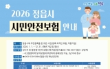 정읍시 클릭뉴스2026. 01.15[클릭뉴스]정읍시가 각종 재난과 일상 속 사고로부터 시민들을 보호하기 위해 2026년 시민안전보험의 보장 범위를 대폭 강화했다. 시는 올해부터 보장 항목을 18개에서 25개로 늘려 더 촘촘한 사회적 안전망을 구축한다고 15일 밝혔다. 특히 ‘상해 진단 위로금’도입으로 올해부터는 상해로 4주 이상 진단을 받을 경우 위로금을 지급해 실제 치료 과정에서 시민이 체감할 수 있는 보장 강화에 초점을 맞췄다. 가입 대상은 정읍시에 주민등록이 돼 있는 시민이라면 별도의 절차 없이 자동으로 가입된다. 보험료는 전액 시가 부담하며, 보험…