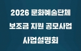 순천시 클릭뉴스2026. 01.13[클릭뉴스]순천시는 오는 16일 오후 3시, 삼산도서관 3층 시청각실에서 순천시 문화예술단체를 대상으로 ‘2026년 순천시 문화예술단체 보조금 지원사업 설명회’를 개최한다고 밝혔다. 이번 설명회는 공모사업의 세부 내용과 중점 추진 방향을 공유하고 지방보조금관리시스템(보탬e)을 통한 신청 방법을 안내하는 한편, 현장에서 질의응답을 통해 단체들의 궁금증을 해소하기 위해 마련됐다. 설명회 참여는 별도의 신청 절차 없이 당일 현장 등록으로 참여할 수 있으며, 사업 내용과 신청방법에 대한 안내를 직접 들을 수 있다, 자세한 사항은 순…