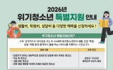 전주시 클릭뉴스2026. 01.12[클릭뉴스]광주광역시 북구가 청소년들이 건강하게 사회의 일원으로 성장할 수 있도록 분야별 지원에 나선다. 12일 북구에 따르면 오는 30일까지 ‘위기 청소년 특별지원사업’ 대상자를 모집한다. 이번 사업은 사회․경제적으로 어려움을 겪고 있는 청소년에게 필요한 맞춤형 서비스를 제공하여 이들의 안정적인 자립을 돕기 위해 마련됐다. 총 1억 원의 예산을 활용해 ▲생활 ▲건강 ▲학업 ▲자립 ▲상담 ▲법률 ▲활동 ▲기타 지원 등 8개 분야의 서비스를 제공받는 데 필요한 비용 또는 물품 등을 지원하는 것이 골자이다. 지원 기간은 1년 이…