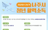 나주시 박기철 기자2026. 04.20[클릭뉴스]전남 나주시가 지역 청년의 사회참여 확대와 안정적 정착을 지원하기 위해 공공활동 참여를 조건으로 분기별 30만 원을 지급하는 ‘청년 활력소득 지원사업’ 2분기 참여자 모집에 나선다. 지원 대상은 공고일 기준 최근 1년 이상 나주시에 주민등록을 두고 계속 거주 중인 2002년생 청년으로 SNS 정책홍보, 봉사활동, 지역행사 참여, 청년 커뮤니티 활동 등 4개 분야 중 1개 이상 활동에 참여해야 한다. 20일 나주시에 따르면 신청 기간은 오는 6월 5일까지이며 나주시 청년센터 누리집을 통한 온라인 신청 또는 주소지 관할 …