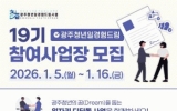 정읍시 클릭뉴스2026. 01.08[클릭뉴스]광주광역시는 올해 상반기 광주 청년들에게 직무현장 일경험을 제공할 ‘광주청년 일경험 드림터(사업장)’를 오는 16일까지 모집한다. ‘광주청년 일경험 드림’ 사업은 미취업 청년이 다양한 사업장에서 일경험을 통해 직무 역량을 강화하고, 지역사회 참여를 통해 지역 정착을 유도하기 위해 지난 2017년부터 추진해온 광주시 대표 청년 일자리 정책이다. ‘드림터’ 모집 대상은 광주시와 광주전남공동혁신도시, 빛그린산단에 소재한 상시근로자 5인 이상 사업장이다. 청년에게 단순 보조 직무가 아닌 각 사업장의 특성을 반영한 질 좋은…