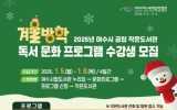 경제 클릭뉴스2025. 12.31[클릭뉴스]여수시가 운영하는 5개 공립 작은도서관에서 오는 2026년 1월 5일부터 8일까지 ‘겨울방학 독서문화 프로그램’ 수강생 106명을 선착순 모집한다. 이번 프로그램은 방학을 맞아 학생과 성인을 대상으로 독서를 통해 창의력·사고력을 증진하기 위한 다양한 독서문화 프로그램으로 마련됐다. 운영 기간은 오는 2026년 1월 12일부터 2월 24일까지며 프로그램별 기간이 다르다. 운영 작은도서관은 ▲여문늘벗(구 중부보건지소) ▲꿈을키우는(미평 선경 3차 아파트) ▲화양열린(화양면민회관 2층) ▲청솔글누리(돌산 청솔 2차 아파트)…