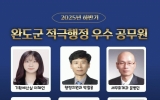 전주시 클릭뉴스2025. 12.31[클릭뉴스]완도군은 지난 24일 적극행정위원회를 개최하고 ‘2025년도 하반기 적극 행정 우수 공무원’ 4명과 협업팀 2팀을 선정했다. 적극 행정 우수 공무원에는 기획예산실 이혜인 주무관, 행정지원과 황철웅 팀장, 세무회계과 문병민 팀장, 금일읍 안아란 주무관, 협업팀은 서무팀과 사회재난팀이 이름을 올렸다. 적극 행정 우수 공무원 선정은 총 9개 적극 행정 사례 중 예선 심사를 거쳐 본선에 오른 7개(개인 6, 협업팀 1) 사례에 대해 ‘소통 24’의 전 국민 온라인 투표와 발표를 거쳐 최종 선발됐다. 기획예산실 이혜인 주무관…