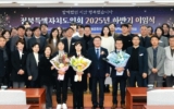 광주광역시 클릭뉴스2025. 12.29[클릭뉴스]전북특별자치도의회는 29일 의원총회의실에서 문승우 의장을 비롯한 사무처 직원들이 참석한 가운데 ‘2025년 하반기 이임식’을 가졌다. 문 의장은 이날 퇴임하는 곽효승 사무처장과 이리나 농업복지환경전문위원, 박선주 교육전문위원 교육팀장, 양지숙 입법정책담당 주무관 등 4명에게 공로패를 수여했다. 사무처 직원들도 오랜 세월 전북특별자치도의회를 위해 묵묵히 헌신해 온 선배 공무원들의 발자취를 되새기며, 함께했던 시간과 추억을 공유했다. 특히 공직자로서 보여준 책임과 열정에 깊은 감사와 존경의 마음을 전하는 한편, 아쉬움 속…