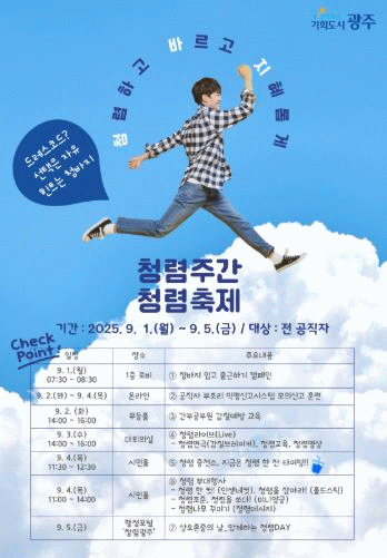 | 광주광역시, 9월1일 ‘청바지’ 입고 출근하세요 '청렴은 바로 지금'