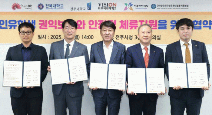 우범기 전주시장은 “외국인 유학생도 전주의 소중한 이웃이자 미래 인재이며, 이번 협약을 통해 유학생들이 학업에 전념하고 생활에 안정할 수 있도록 든든한 지원 체계를 마련할 것”이라며 “전주가 글로벌 인재와 함께 성장하는 글로벌 포용도시로 도약할 수 있도록 행정적·제도적 기반을 더욱 강화해 나가겠다”고 강조했다.