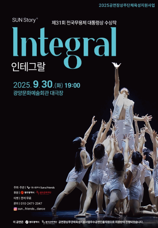 | 광주문화재단, 2025공연장상주단체육성지원사업 우수공연진출지원 선정작 광양에 선보여 댄스컴퍼니 Sun·Friends의 대표작『인테그랄(Integral)』무대에 올라 클릭뉴스 pkc0070@naver.com |
